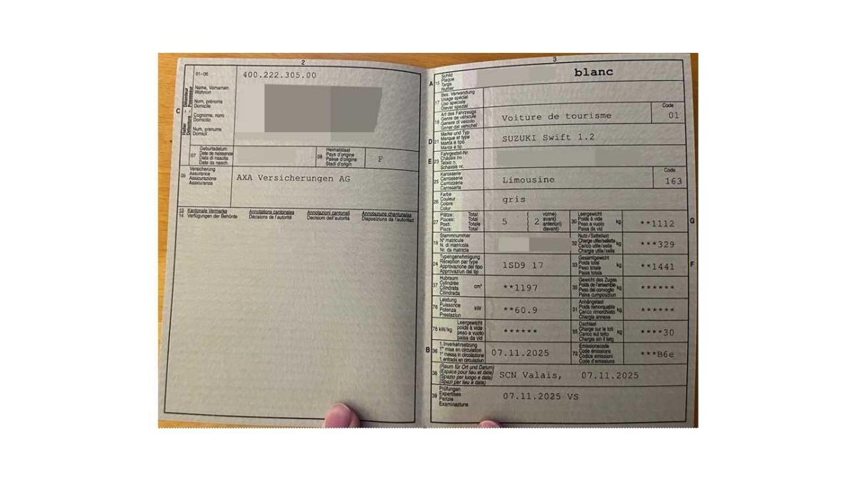 | Fahrzeugausweis | Vorhanden |