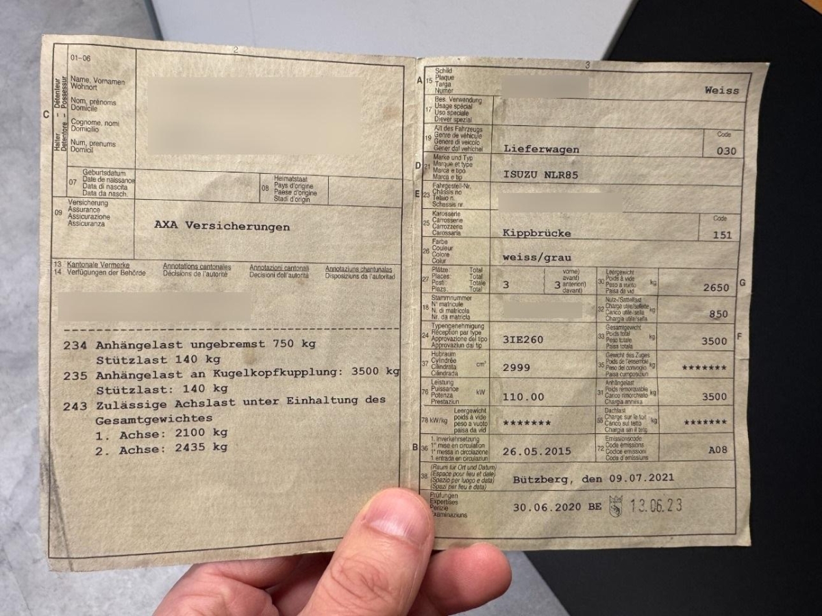 | Fahrzeugausweis | Vorhanden |