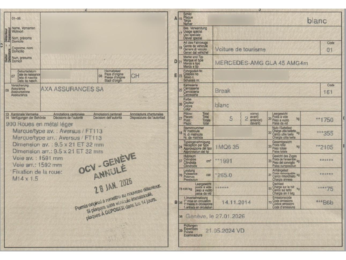 | Fahrzeugausweis | Vorhanden |
