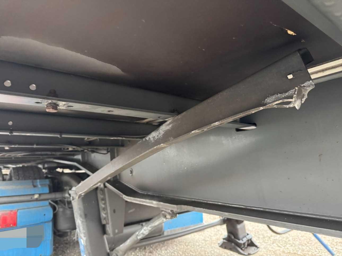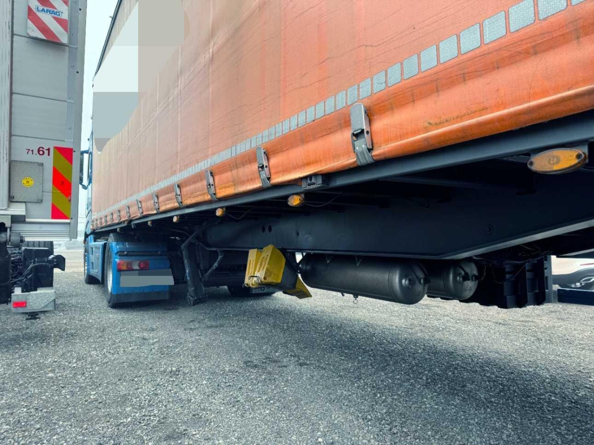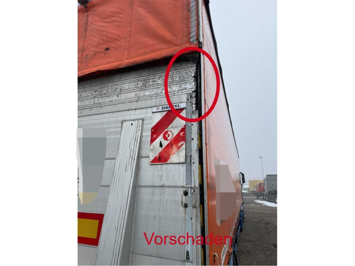 Der Unterfahrschutz links die Werkzeugbox, Stützeinrichtung, der Längsträger usw. sind beschädigt