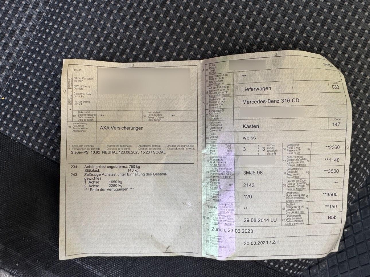 Aussenspiegel rechts und links beheizbar und elektrisch verstellbar, Drehzahlmesser, Elektrische Klemmleiste, Zusatzheizung, Elektronisches Stabilitäts-Programm ADAPTIVE ESP, Stabilisator hinten, Antiblockiersystem (ABS), Elektrik für Anhängersteckdose, Leseleuchten vorne, Antriebsschlupfregelung (ASR), Abschliessbares Handschuhfach, Tageskilometerzähler, Rollwiderstandsoptimierte Reifen, Stahlräder 16J, Zentralverriegelung mit Fernbedienung, Stabilisator vorne, Ersatzradhalterung, Kotschutzlappen vorne, 3-Punkt-Sicherheitsgurte auf allen Plätzen, Polster: Stoff-Ausstattung, Alternator verstärkt 180 A, Lackierung: Uni-Lackierung, Wartungsintervall-Anzeige, Türen: Schiebetüre rechts, Leuchtweitenregulierung von innen, Digital Uhr, Vliesbatterie, Radiovorbereitung, Antenne, Entstörung und 2 LS, ISOFIX Kindersitzvorrichtung, Wegfahrsperre elektronisch, Elektrische Fensterheber vorne, Getriebe: 6-Gang-Schaltgetriebe, Bremsassistent (BAS), Airbag: Airbag Fahrerseite, Getriebe: Partikelfilter und Oxydationskatalysator, Servolenkung, Kotschutzlappen hinten, Lenkrad: Lenkrad längs- und höhenverstellbar, Ablagefach über der Frontscheibe, Gurtstraffer vorne, Motor Start-/Stop-Anlage, Cupholder vorne, Fahrwerk tiefergelegt, Wärmeschutzverglasung, Radio Audio 10, Beifahrer Doppelsitzbank, Licht: Nebelschlussleuchte, Reserverad, Drittes Bremslicht, Frontscheibe mit Color-Band, Komfort-Fahrersitz