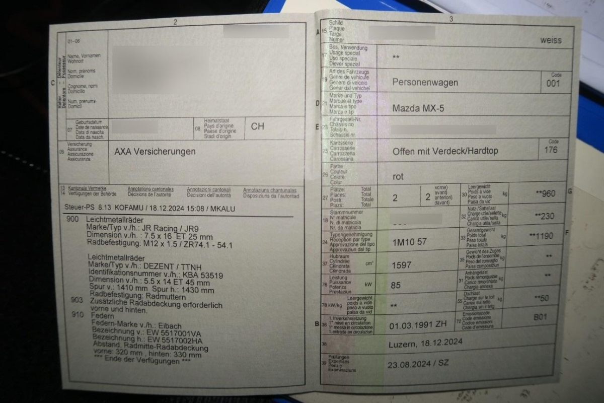 | Fahrzeugausweis | Vorhanden |