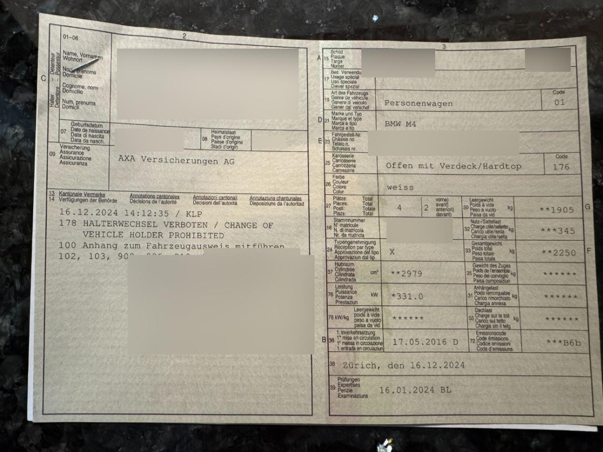| Fahrzeugausweis | Vorhanden |