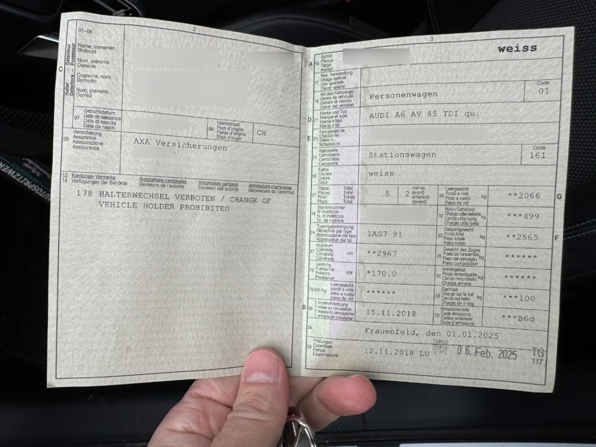 | Fahrzeugausweis | Vorhanden |