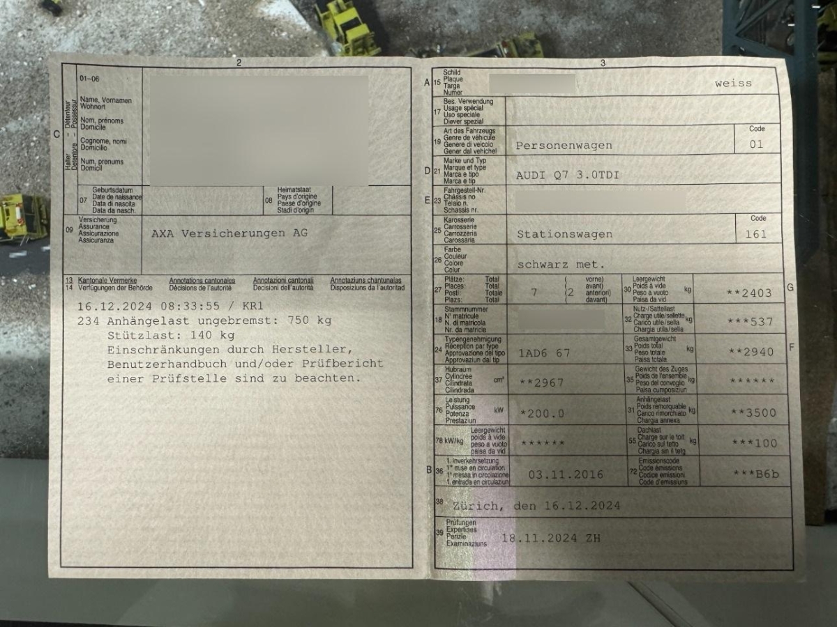 | Fahrzeugausweis | Vorhanden |