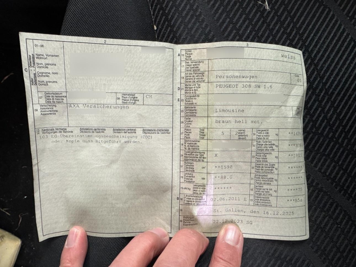 | Fahrzeugausweis | Vorhanden |