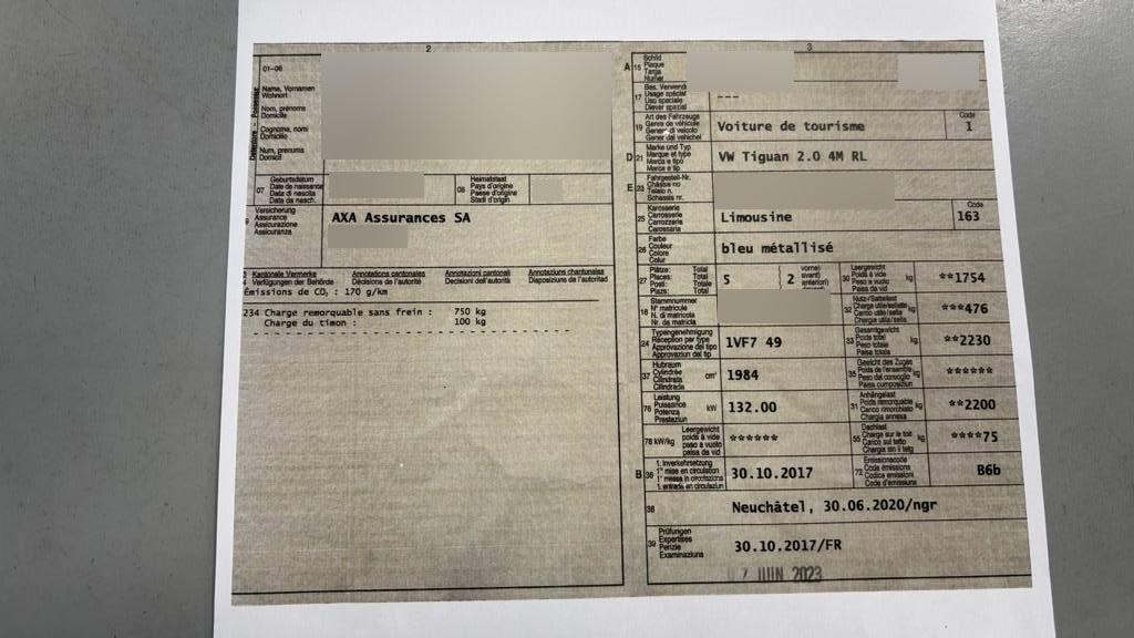 | Fahrzeugausweis | Vorhanden |