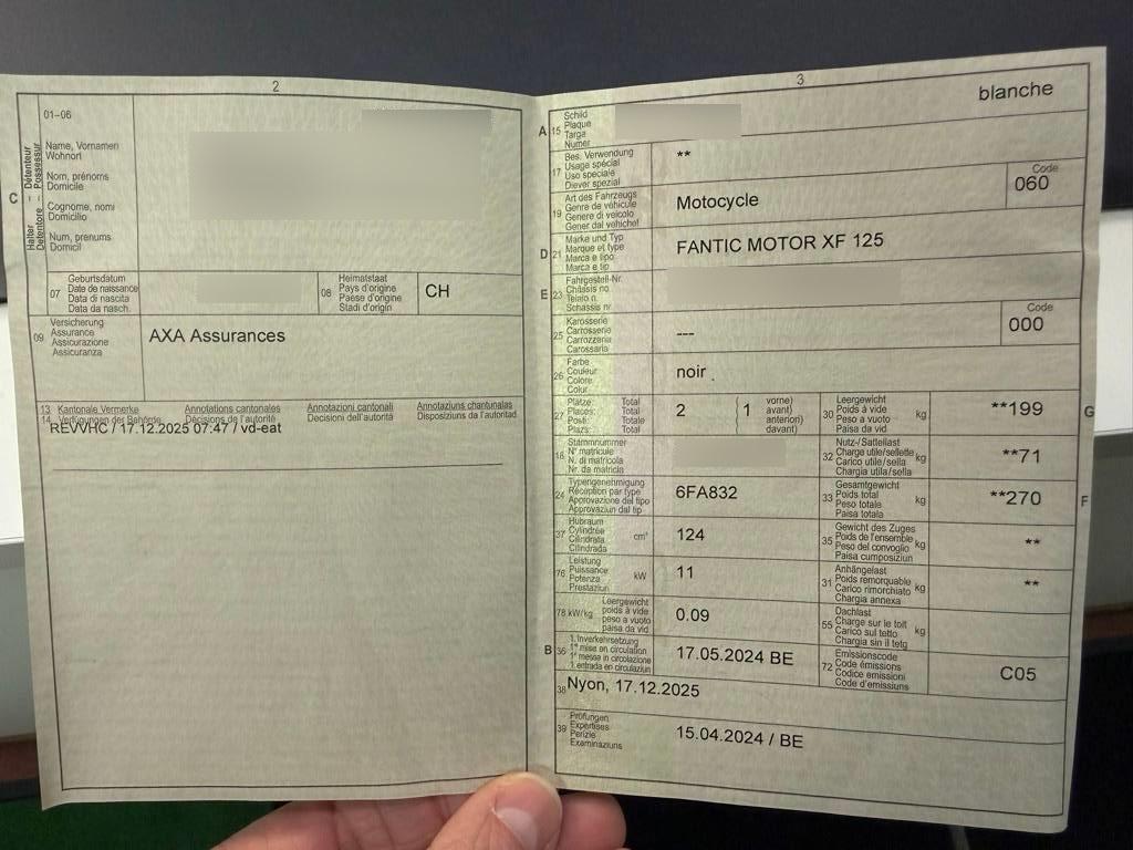 | Fahrzeugausweis | Vorhanden |