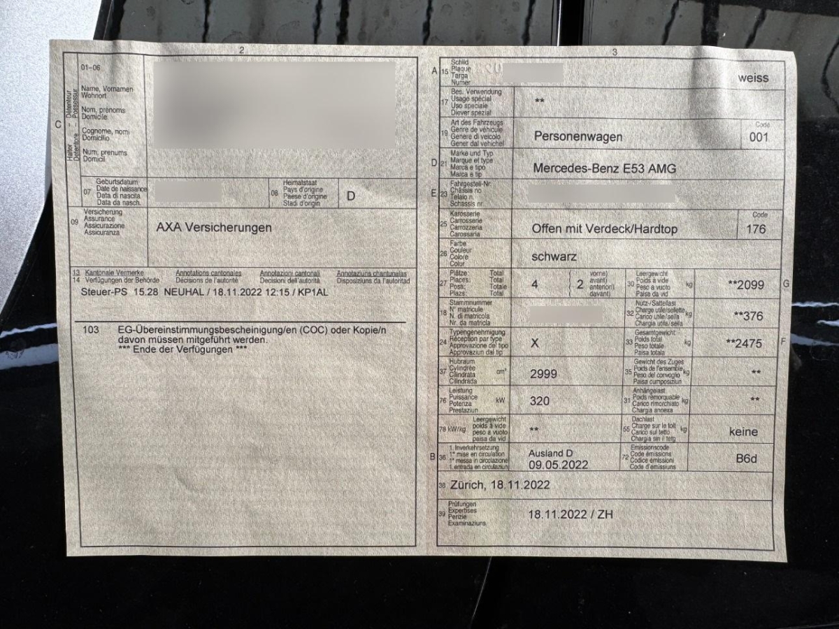 | Fahrzeugausweis | Vorhanden |