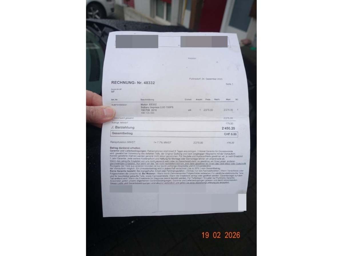 Motor wurde im Jahr 2020 gekauft, das Fahrzeug hatte ca. 105'000 Kilometer (Siehe Rechnung unter den Fotos)