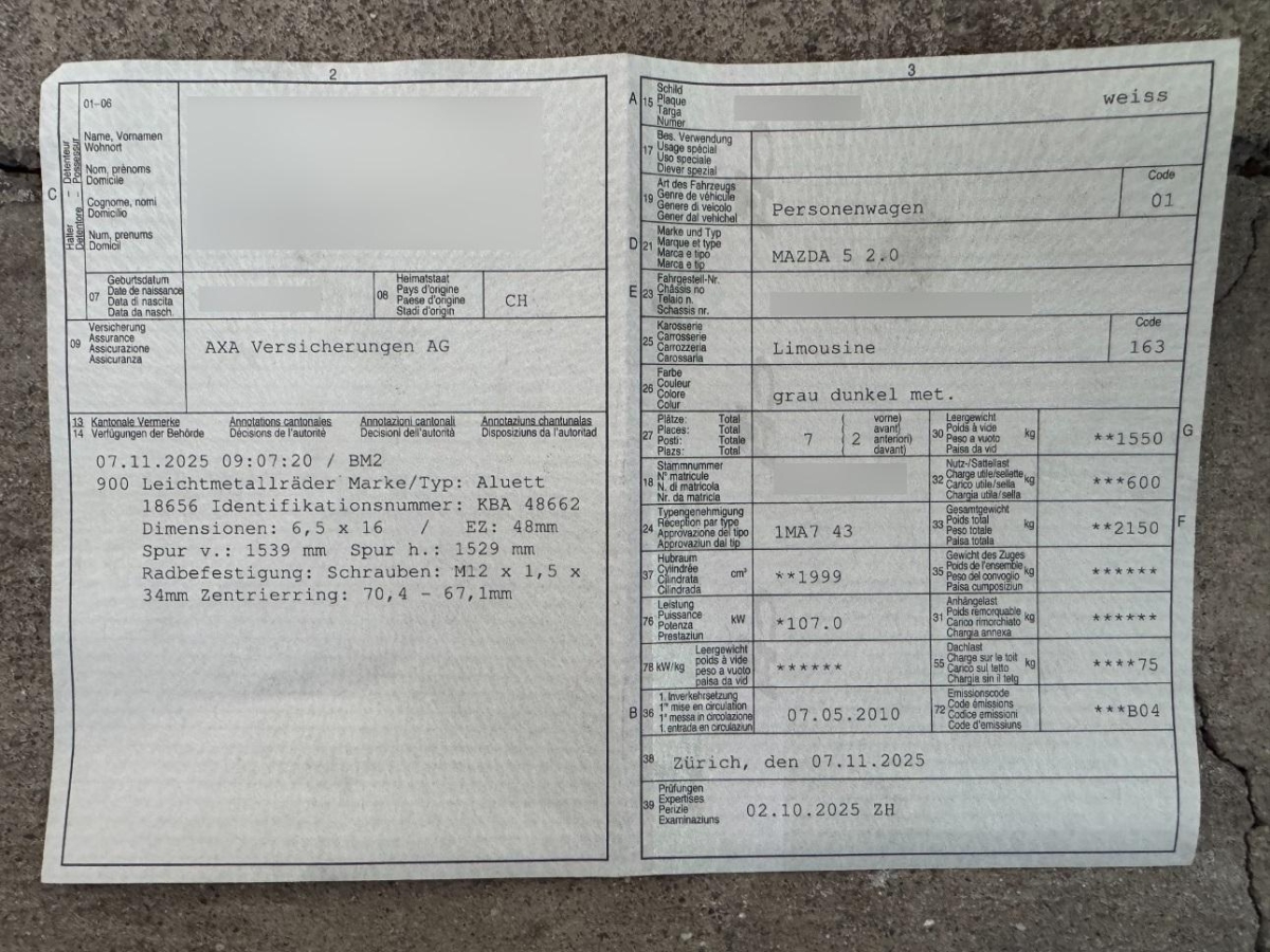 | Fahrzeugausweis | Vorhanden |