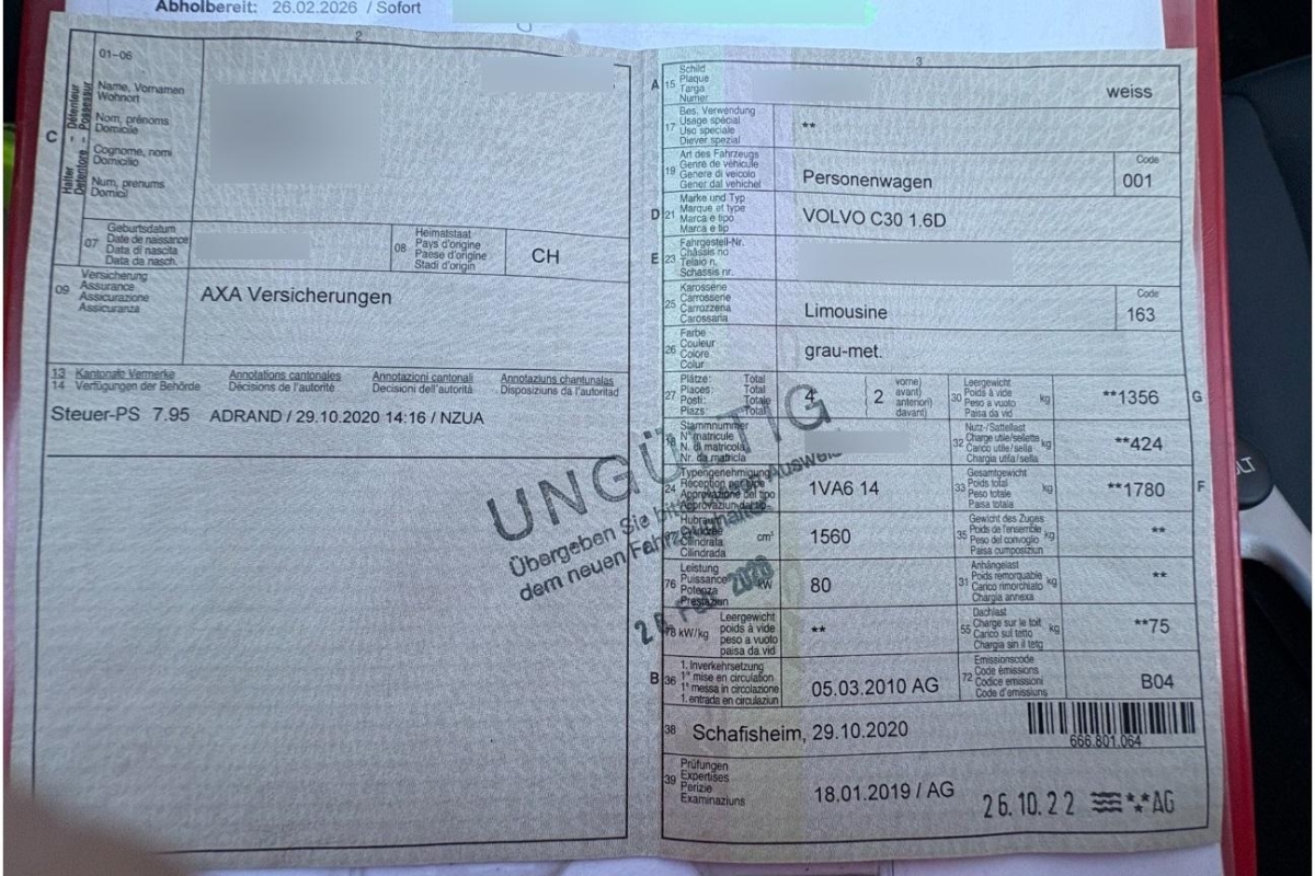 | Fahrzeugausweis | Vorhanden |