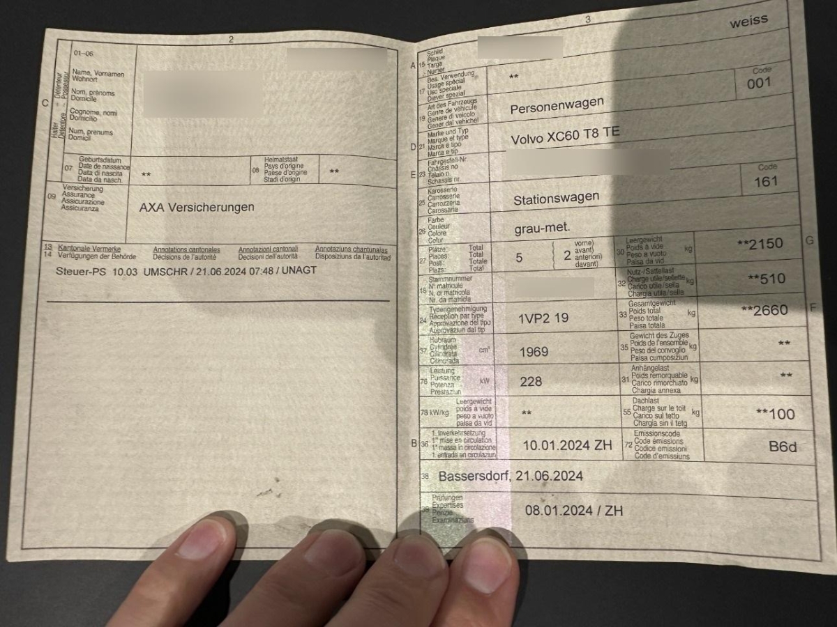 Fensterheber vorn und hinten elektrisch - mit Auto-Up- und Auto-Down-Funktion, Deaktivierung der Hochvoltbatterie im Falle einer Kollision, Volvo VSP Garantie: 5 Jahre oder 150'000 - Gratisservice: 10 Jahre oder 150'000 km. Reparaturen: 3 Jahre oder 150'000 km (ab 1. Inv.)., Mittelarmlehne hinten (klappbar) mit Getränkehaltern, Assist: Sicherheitsbremssystem mit Scheibenbremsen rundum (innenbelüftet), automatischer Bremssystem - und automatischer Haltefunktion, Induktives Ladesystem (QI-Standard) lädt Smartphones auf einer Ladefläche kabellos auf (Kompatibilität vorausgesetzt), Assist: Festbremsautomatik - Automatisches Festbremsen nach dem Auslösen der Airbags oder der Gurtstraffer, um Folgeunfälle zu verhindern, Haken im Gepäckraum (zur Befestigung von Einkaufstaschen), ESC - Fahrdynamikregelung - inkl. Untersteuerungskontrolle, Motorbremskontrolle, Fahrzeugneigungskontrolle und erweiterter Stabilitätskontrolle, Airbag: Airbag Beifahrer deaktivierbar, Assist: Keyless Drive (elektronisches Zugangssystem) - mit sensorgesteuerter Heckklappe - wasserfestem Mikroschlüssel - beleuchteten Türgriffen und Bodenleuchten, Chromapplikationen an den Seitenfenstern, Dachantenne (Finne), Servolenkung geschwindigkeitsabhängig, Innen- und Aussenspiegel automatisch abblendend, Panorama-Glas-Schiebedach mit Hebefunktion mit integriertem, stufenlos einstellbarem Sonnenschutz, Räder: Reifendichtmittel mit 12-V-Kompressor - Höchstgeschw. 80 km/h, Assist: Road Edge Detection - System zum Schutz vor unbeabsichtigtem Verlassen der Fahrbahn durch Lenk- und Bremseingriffe, Aussenspiegel elektrisch einklappbar inkl. Bodenbeleuchtung, Verzurrösen im Gepäckraum (klappbar), Chromzierleiste im Türschwellerbereich mit Recharge-Logo, Räder: TPMS Reifendrucküberwachungssystem - mit reifenindividueller Druckverlustmeldung, Assist: Hill-Start Assist (HSA) - Berganfahrhilfe, Klima: Standheizung mit Timer (batteriebetrieben) - inkl. Vor- und Nachbelüftung des Innenraums per Volvo On Call Smartphone App oder Menü, Assist: Tempobegrenzer (variabel), Wegfahrsperre elektronisch, Assist: Verkehrszeichenerkennung RSI - Road Sign Information System, Licht: Bremsleuchten adaptiv - bei starker Verzögerung schnelles Aufleuchten der Bremsleuchten; bei Geschwindigkeiten unter 10 km/h automatische Aktivierung der Warnblinkanlage, Licht: Nebelschlussleuchte, Heckklappe elektrisch - automatisches Öffnen auf vier Weisen: mit Fernbedienung, mit der Taste an der Armaturentafel oder durch Ziehen am Heckklappengriff oder durch einfache Fussbewegung unter dem hinteren Stossfänger., Heckscheiben-Wisch-/Waschanlage, Erste-Hilfe-Tasche und Warndreieck, Digitale Instrumentierung - Vollgrafisches 12,3"-Display (31,2-cm-Diagonale) mit zwei variablen Rundinstrumenten und Infodisplay (z. B. für Navigations-Kartenansicht), Komfortöffnung/-schliessung: Fahrzeugöffnung-/schliessung inkl. Seitenfenster und ggf. Panoramadach, Elektronische Differenzialsperre Corner Traction Control (CTC) mit Torque Vectoring, Tankeinfüllstutzen mit Fehlbetankungsschutz, Licht: Drittes Bremslicht, Make up-Spiegel beleuchtet für Fahrer, Chromapplikationen am Heck, Panikfunktion in Funkfernbedienung integriert, Aussentemperaturanzeige, Regensensor, Media: Volvo On Call - Automatische Notruffunktion mit Übermittlung von Fahrzeugposition und daten sowie Alarmierung des Volvo On Call Service Centers per Knopfdruck über die "Call" Taste, Anhänger Stabilisierungkontrolle TSA - Vorbereitung, Chromapplikationen im vorderen Stossfänger, Einstiegsleisten mit Recharge-Schriftzug, Getriebe: 8-Stufen-Automat sequentiell, Mittelarmlehne vorne mit integriertem Staufach und Getränkehaltern, Assist: Connected Safety - Cloudbasierte Warnung vor rutschigen Fahrbahnverhältnissen und Fahrzeugen mit eingeschalteter Warnblinkanlage, Lenkrad: Sicherheitslenksäule adaptiv, Aussenspiegel elektrisch einstellbar (Fahrerseite mit Weitwinkeloptik), Klima: Klimaautomatik mit getrennter Temperaturregelung für Fahrer und Beifahrer - mit zusätzlichen Belüftungsdüsen für die 2. Sitzreihe, Katalysator geregelt, Lenkrad: Lenkrad längs- und höhenverstellbar, Media: Subwoofer, Armaturenobertafel in Lederoptik mit Kontrastnähten, Media: Digitaler Radioempfang (DAB/DAB+), Sitze: Rücksitzbank im Verhältnis 60/40 oder ganz umklappbar, mit Durchladefunktion, Assist: Oncoming Lane Mitigation, Blinkleuchten (LED) in Aussenspiegel integriert, Colorverglasung, Gepäcktrennnetz, Make up-Spiegel beleuchtet für Beifahrer, Assist: Lane Keeping Aid (LKA - Spurhalteassistent), Aussenspiegel und Heckscheibe beheizbar (automatisch), Acoustic Vehicle Alerting System (AVAS) - akustischer Fussgänger-/Radfahrerschutz durch künstlich generierte Fahrgeräusche im Geschwindigkeitsbereich bis 20 km/h, Dachkantenspoiler, 12 Volt-Steckdose im Laderaum, Air purfilter: Erweitertes Luftqualitätssystem mit Feinstaubfilterung - nach Luftqualitätsstandard PM2,5, Airbag: Airbags für Fahrer und Beifahrer mit zweistufigem Auslösesystem - Knieairbag für Fahrer, Seitenairbags für Fahrer und Beifahrer und Kopf-/Schulterairbags (IC) für alle Insassen, Aktiv-Sicherheitsgurte mit Gurtstraffer, Antiblockiersystem (ABS), Assist: Automatisches Notbremssystem mit Erkennung von Fahrzeugen, Fahrradfahrern und Fussgängern - inkl. Kreuzungsbremsassistent und Notbremsassistent bei Gegenverkehr, Assist: Driver Alert - Aufmerksamkeitswarner, Assist: Einparkhilfe vorn und hinten mit automatischem Bremseingriff (hinten), Assist: Geschwindigkeitsregelanlage - intelligenter Speed Assist - mit akustischem Signal oder automatischer Anpassung der Geschwindigkeit, wenn die Geschwindigkeitsbegrenzung überschritten wird, Assist: Hill Descent Control (HDC), Assist: Präventiv-Schutzsystem bei unbeabsichtigten Verlassen der Strasse oder drohenden Überschläge - Voraktivierung der Gurtstraffer, Notruf über Volvo Cars App, Deaktivierung der Batterie und Türentriegelung, Assist: Ready to Drive notification - Erinnerung z