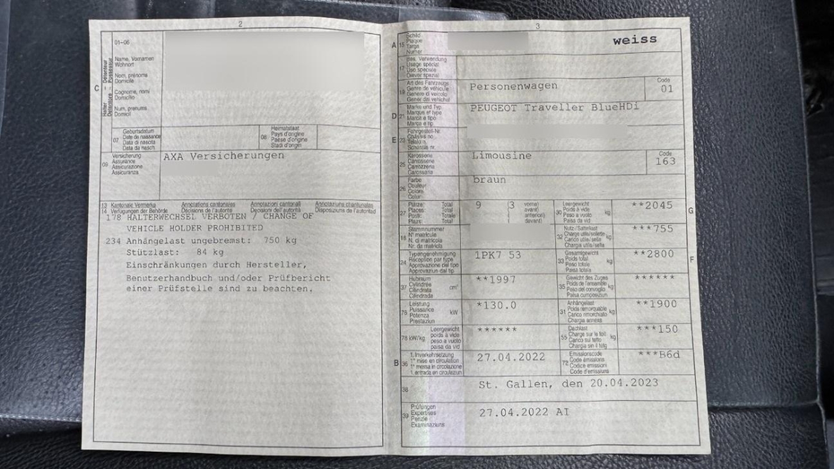 | Fahrzeugausweis | Vorhanden |