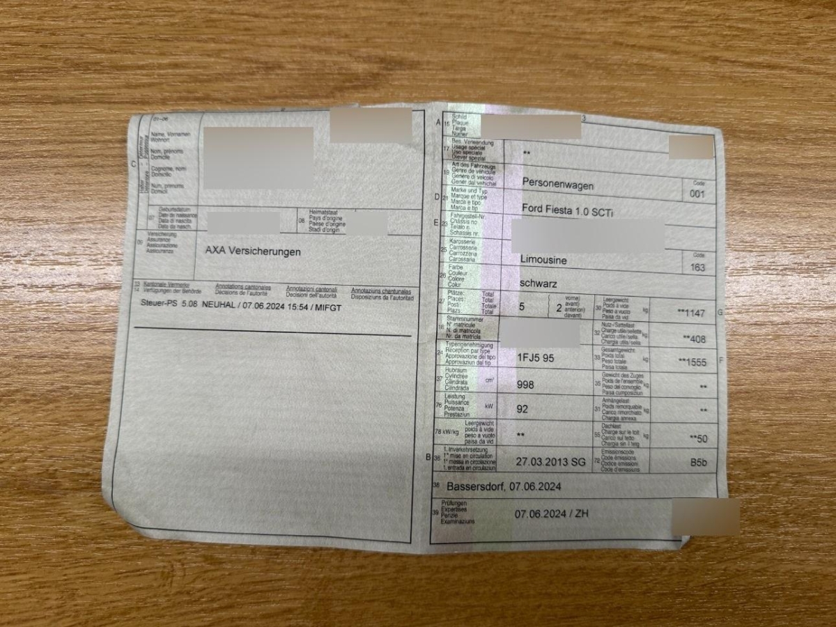 | Fahrzeugausweis | Vorhanden |
