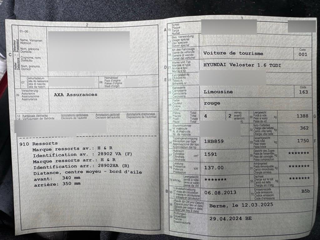 | Fahrzeugausweis | Vorhanden |