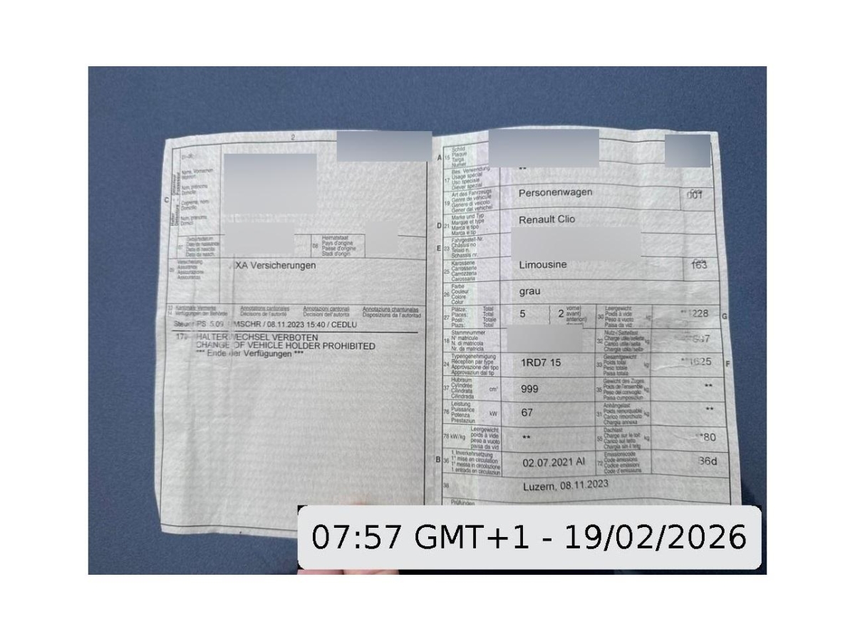 | Fahrzeugausweis | Vorhanden |