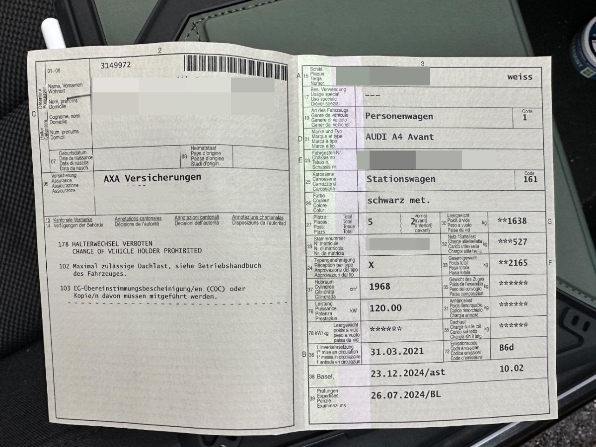 | Fahrzeugausweis | Vorhanden |