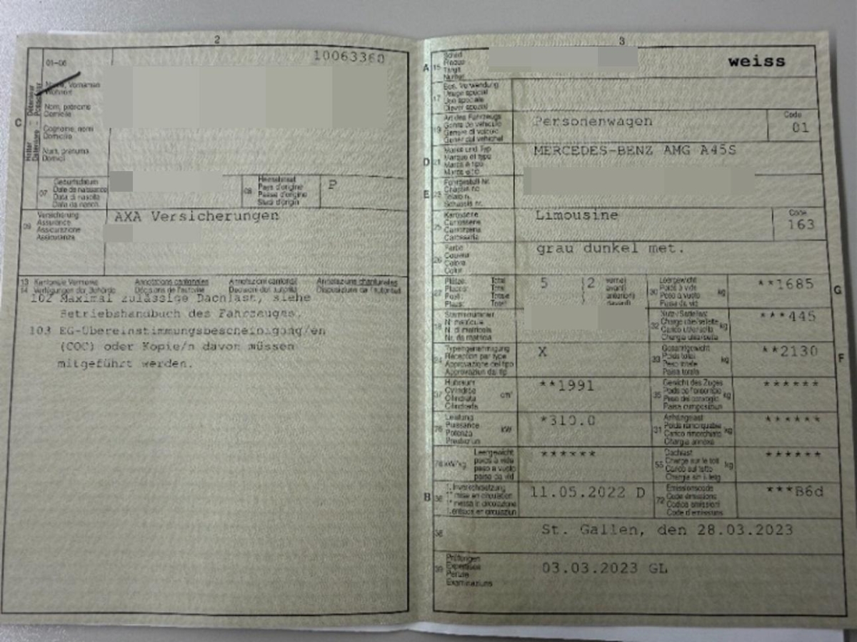 | Fahrzeugausweis | Vorhanden |
