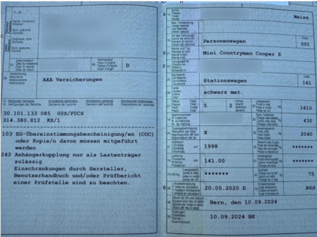 | Fahrzeugausweis | Vorhanden |