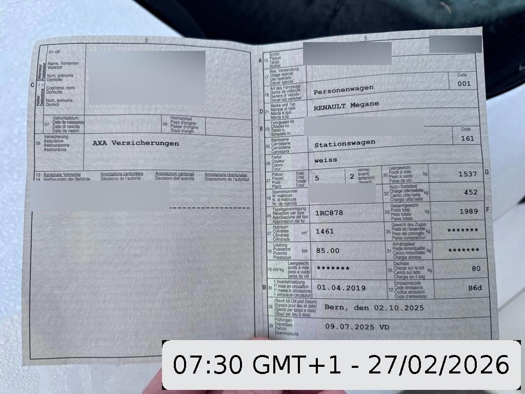 | Fahrzeugausweis | Vorhanden |