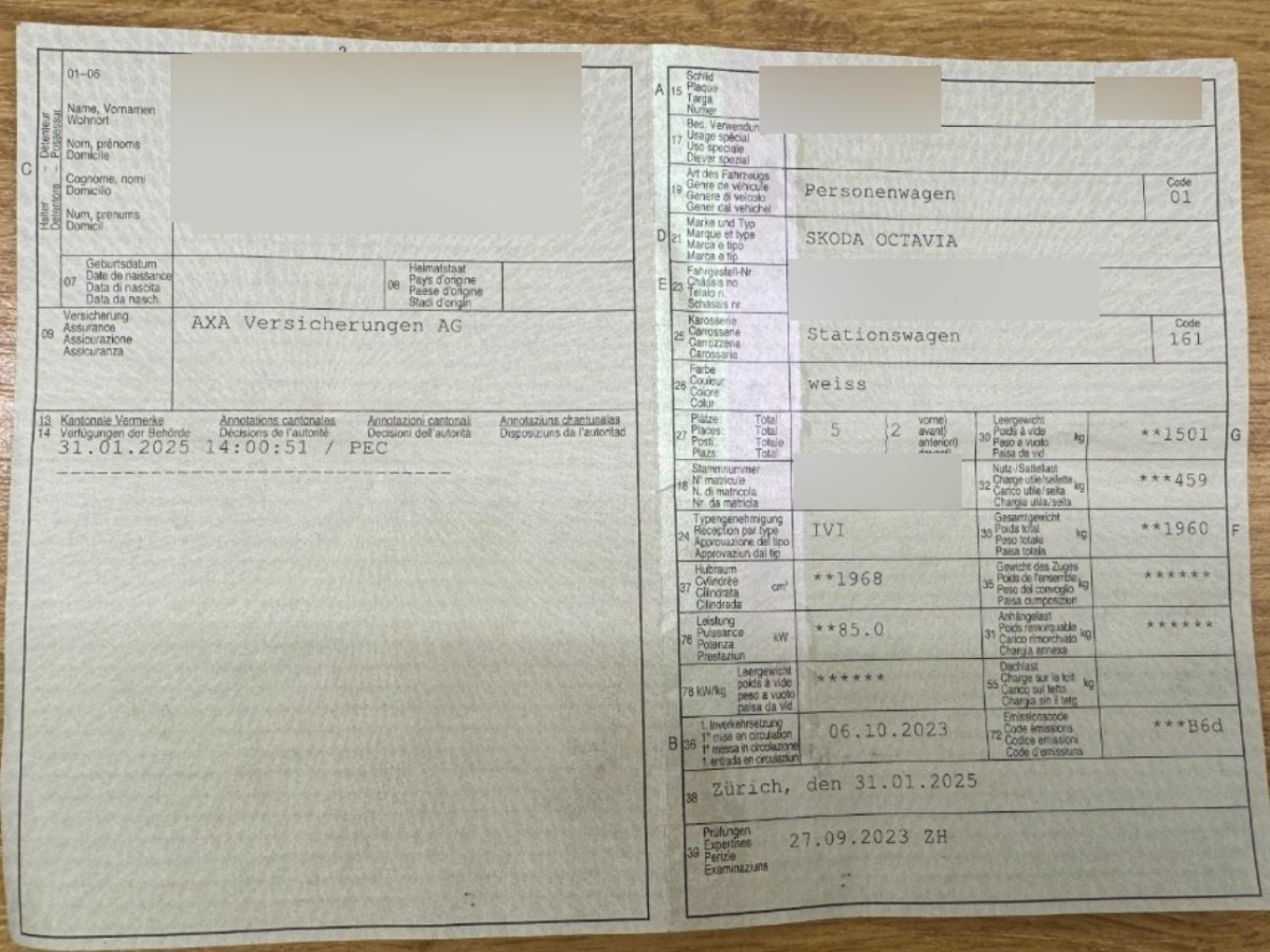| Fahrzeugausweis | Vorhanden |