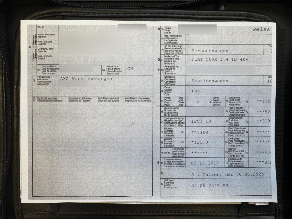 | Fahrzeugausweis | Vorhanden |