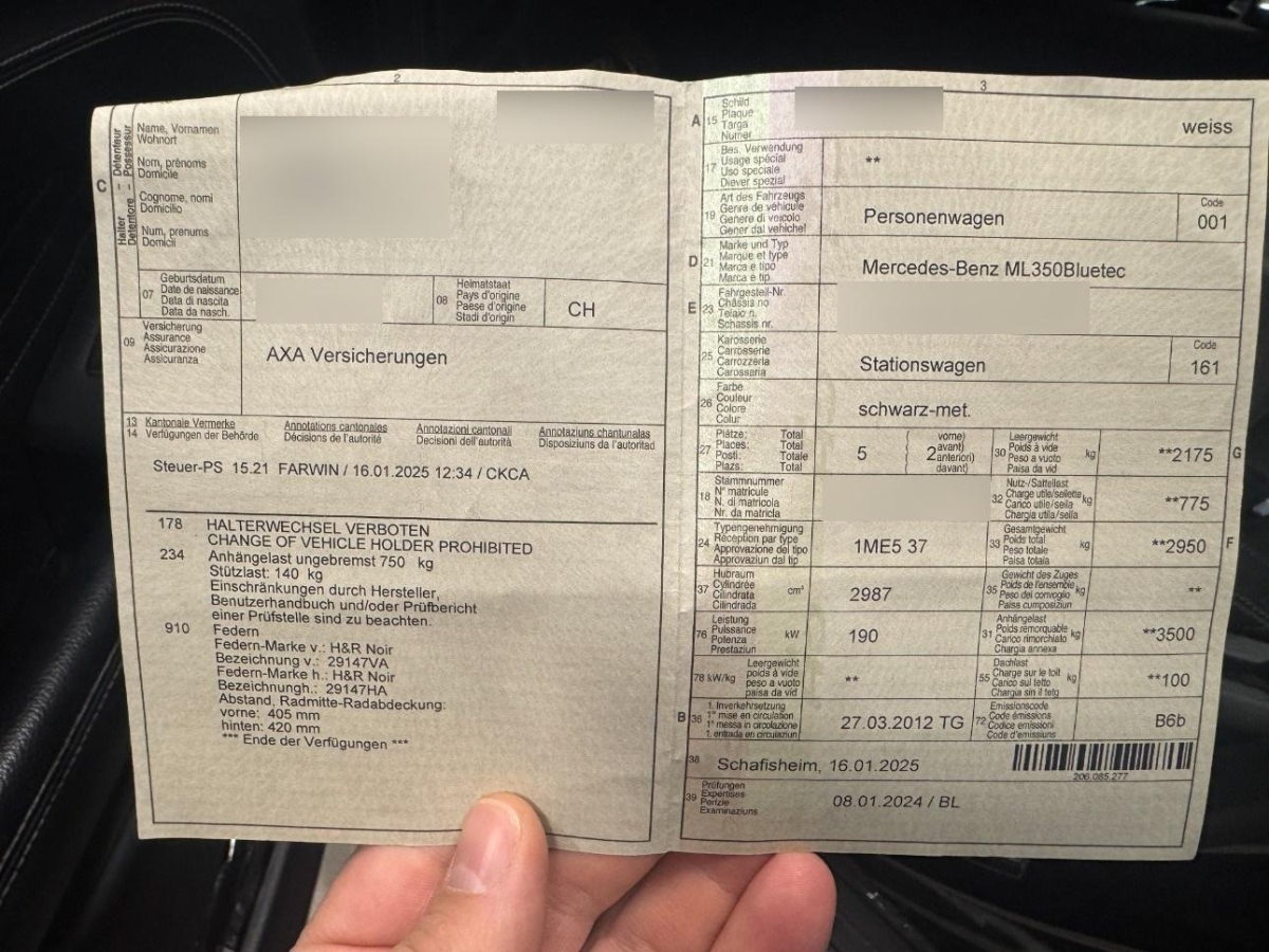 | Fahrzeugausweis | Vorhanden |