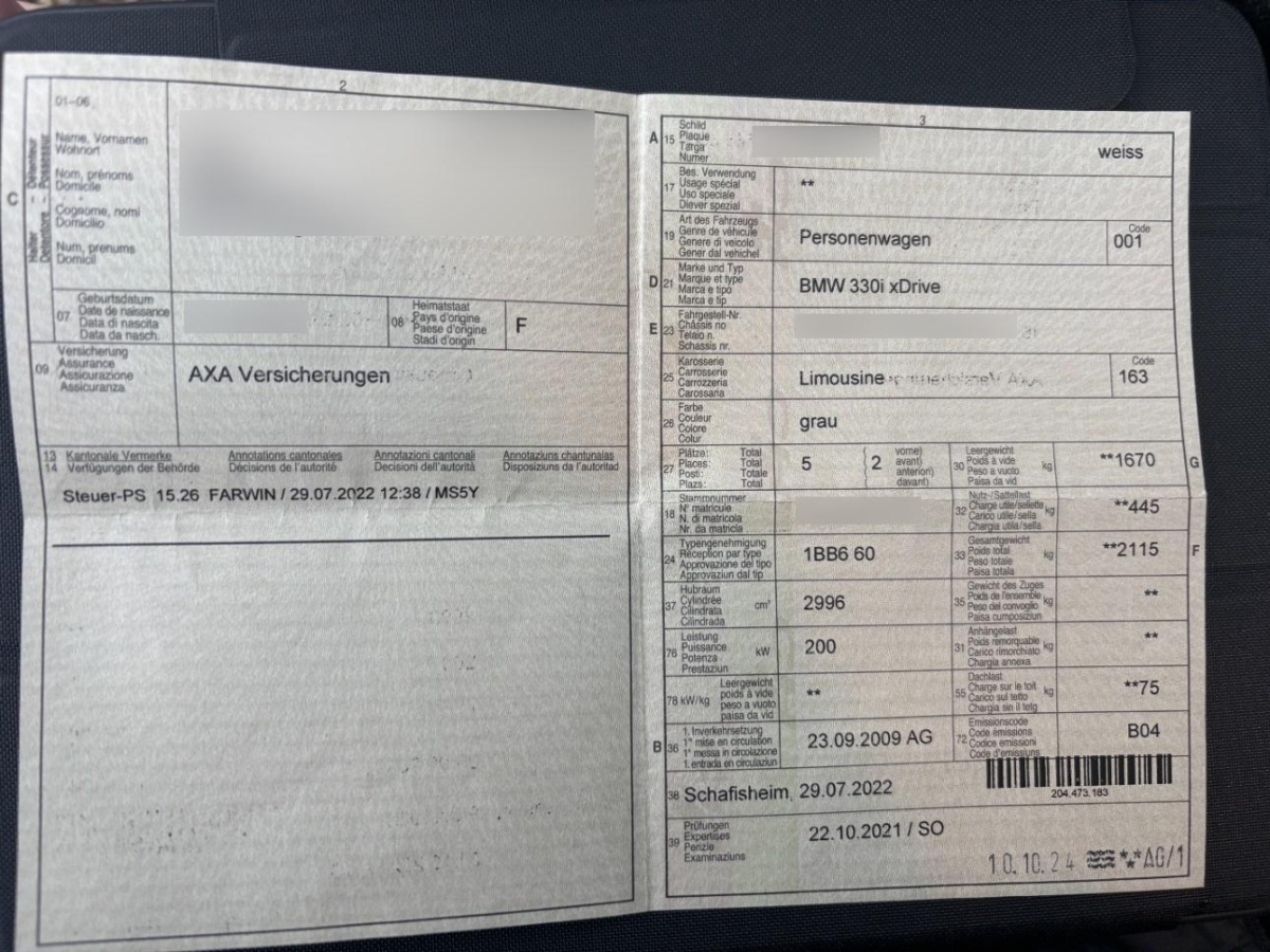 | Fahrzeugausweis | Vorhanden |