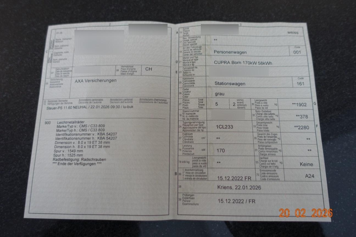 | Fahrzeugausweis | Fehlt |