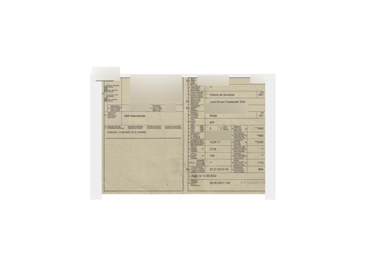 | Fahrzeugausweis | Vorhanden |