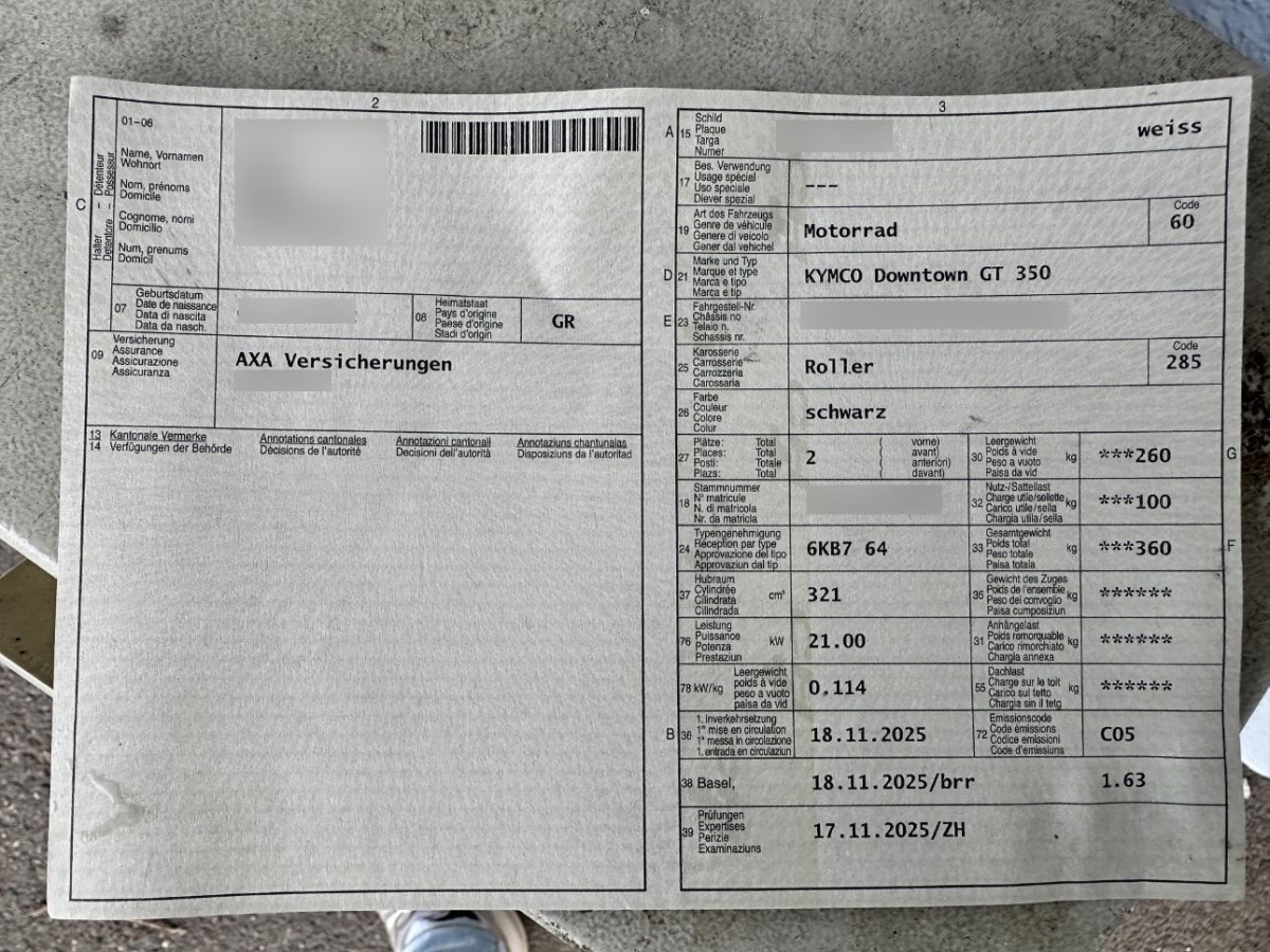| Fahrzeugausweis | Fehlt |