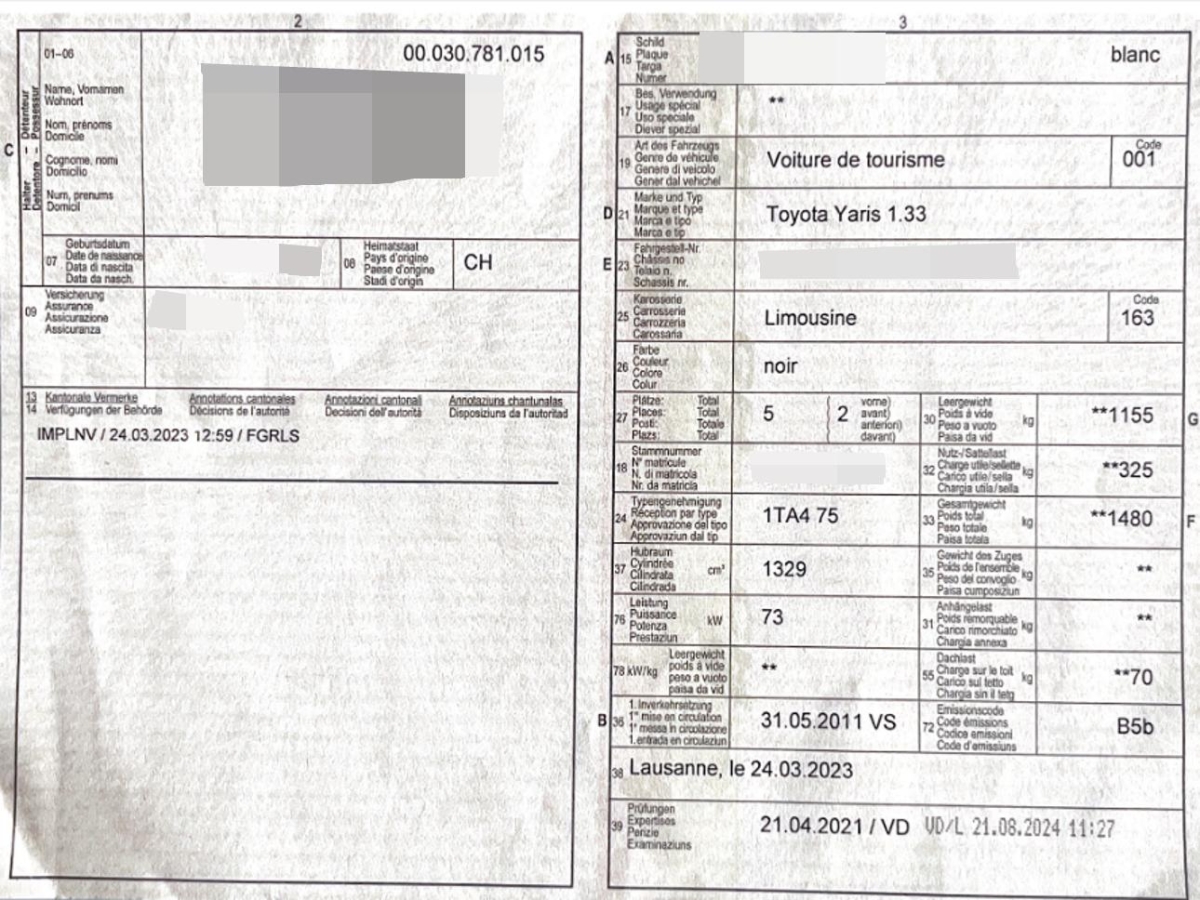 Fahrzeugausweis Vorhanden