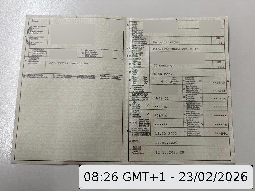 | Fahrzeugausweis | Vorhanden |