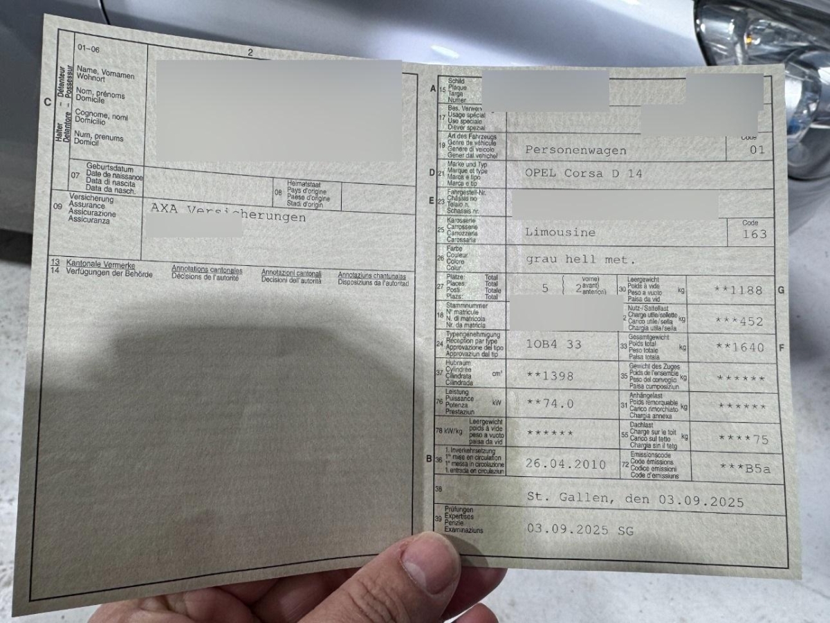 | Fahrzeugausweis | Vorhanden |