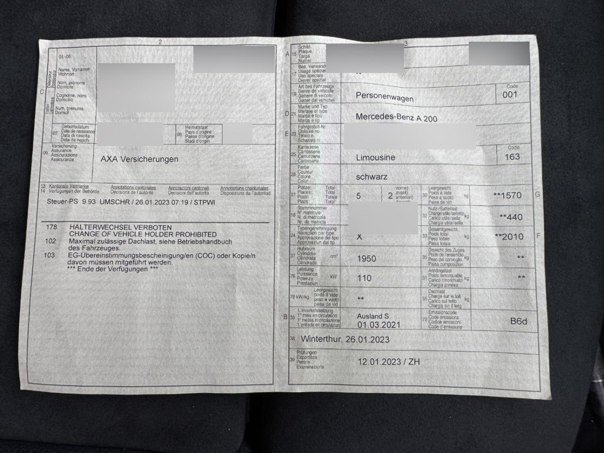 | Fahrzeugausweis | Vorhanden |
