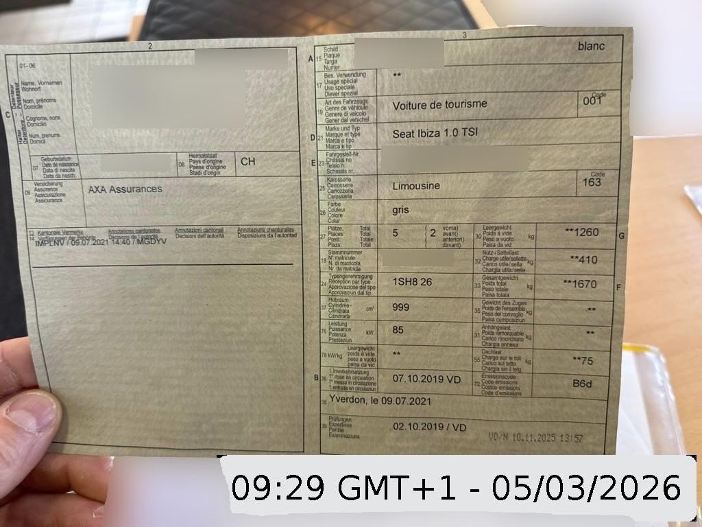 | Fahrzeugausweis | Vorhanden |