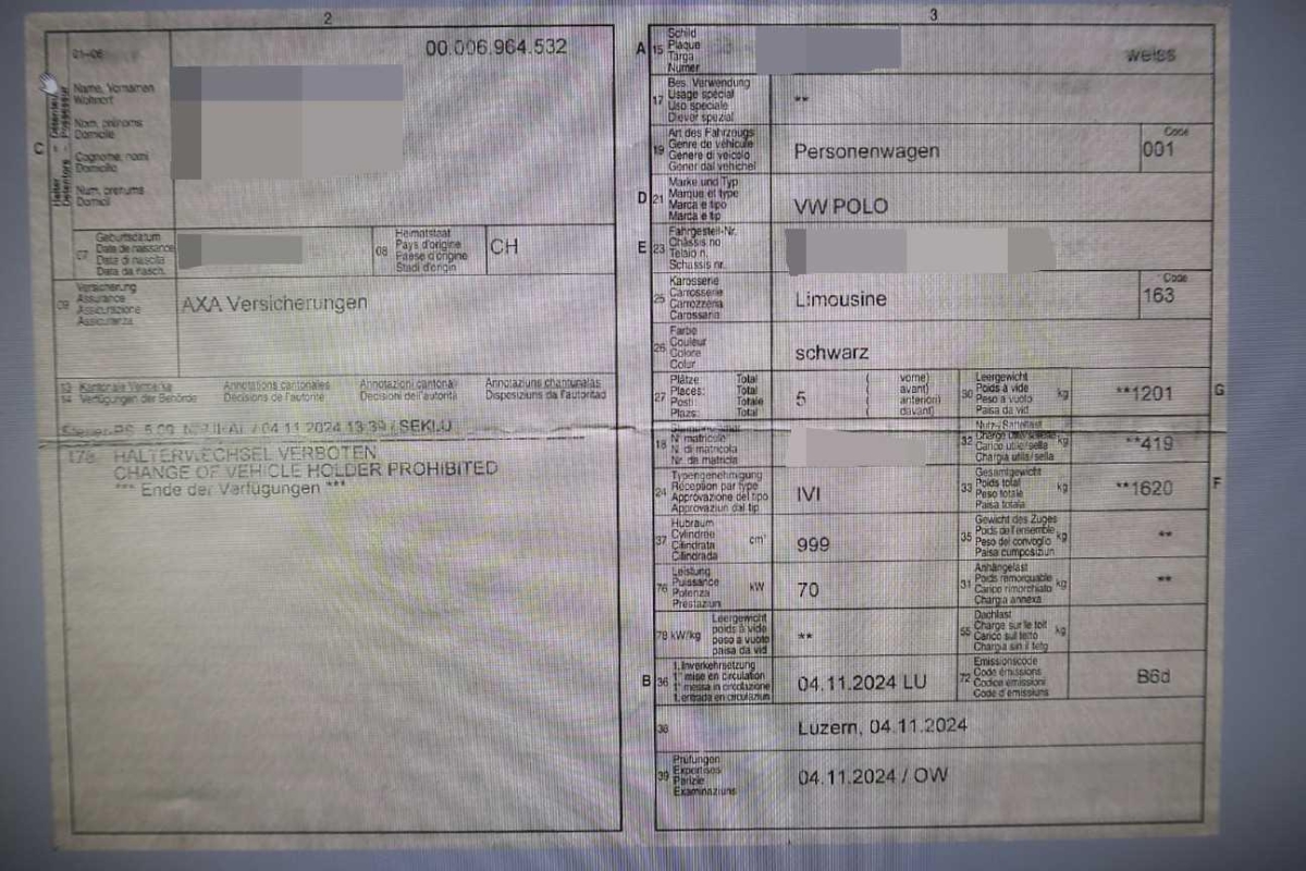 | Fahrzeugausweis | Vorhanden |