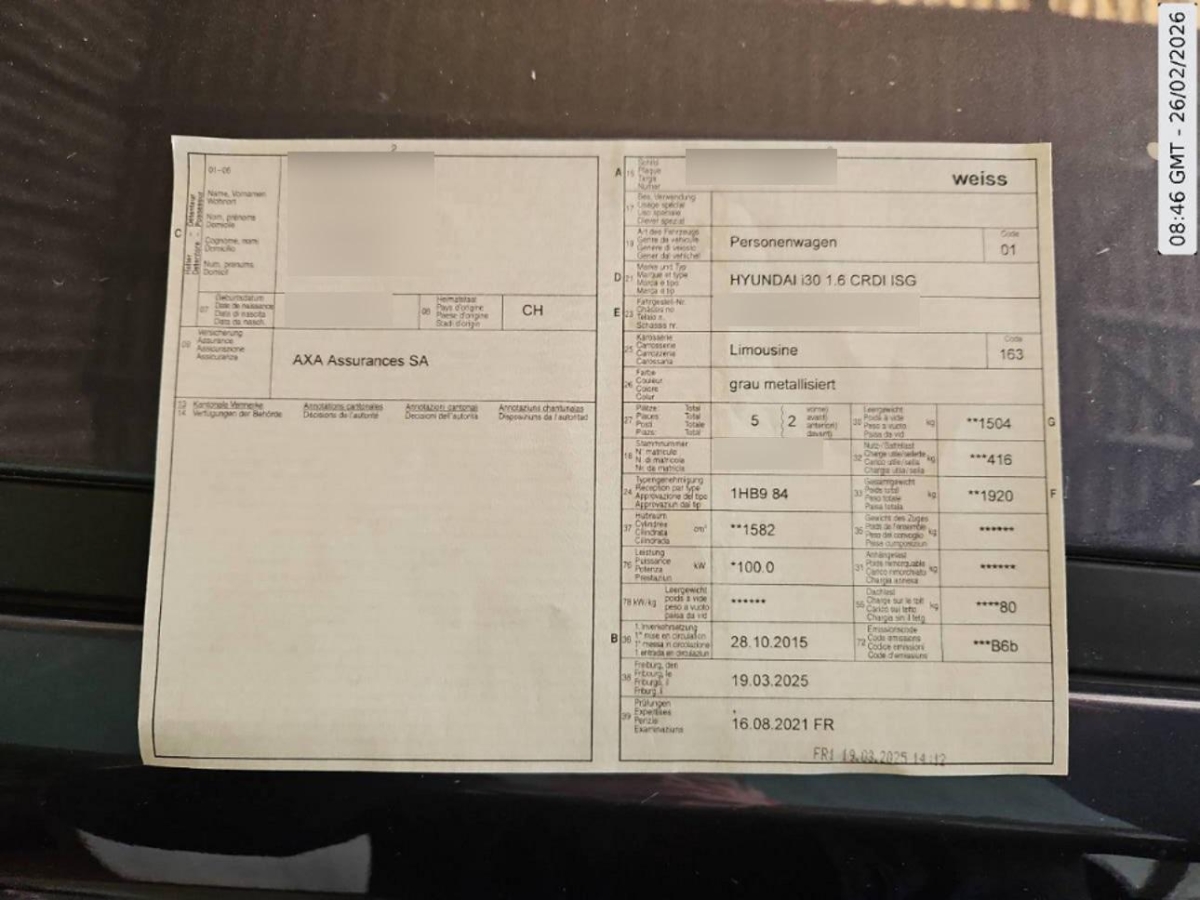 | Fahrzeugausweis | Vorhanden |