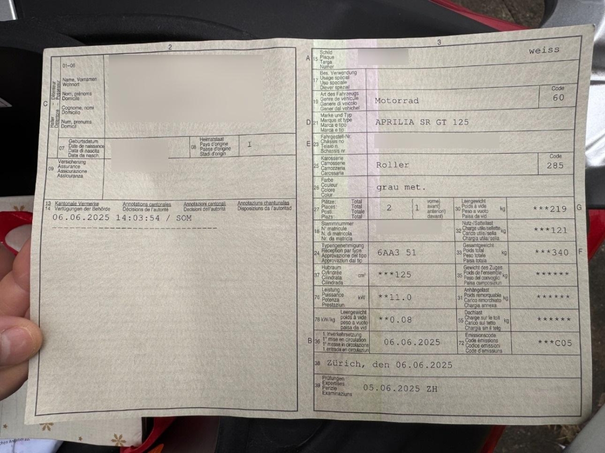 | Fahrzeugausweis | Vorhanden |