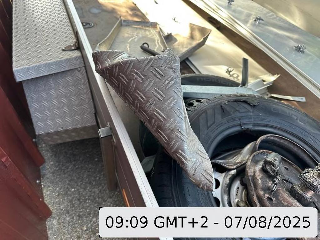 Schaden: Achsenverkleidungen müssen ersetzt werden, Rahmen ist beschädigt (möglicherweise verbogen).