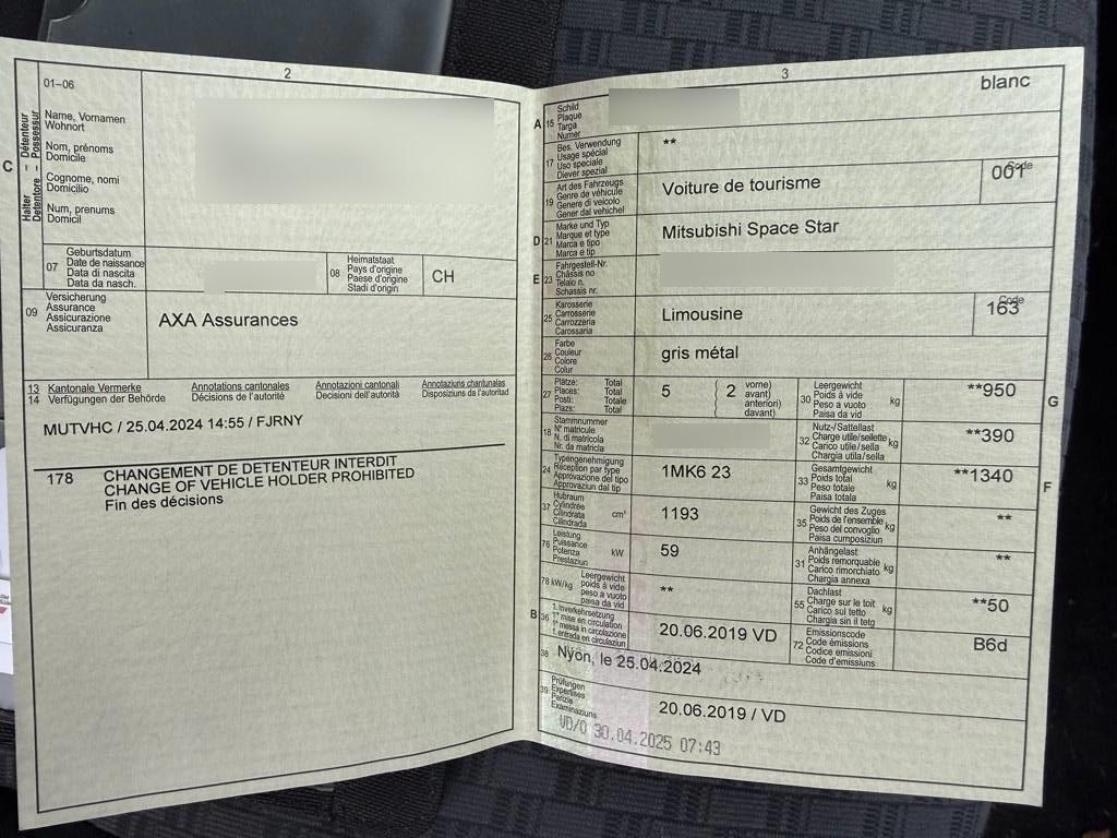 | Fahrzeugausweis | Vorhanden |