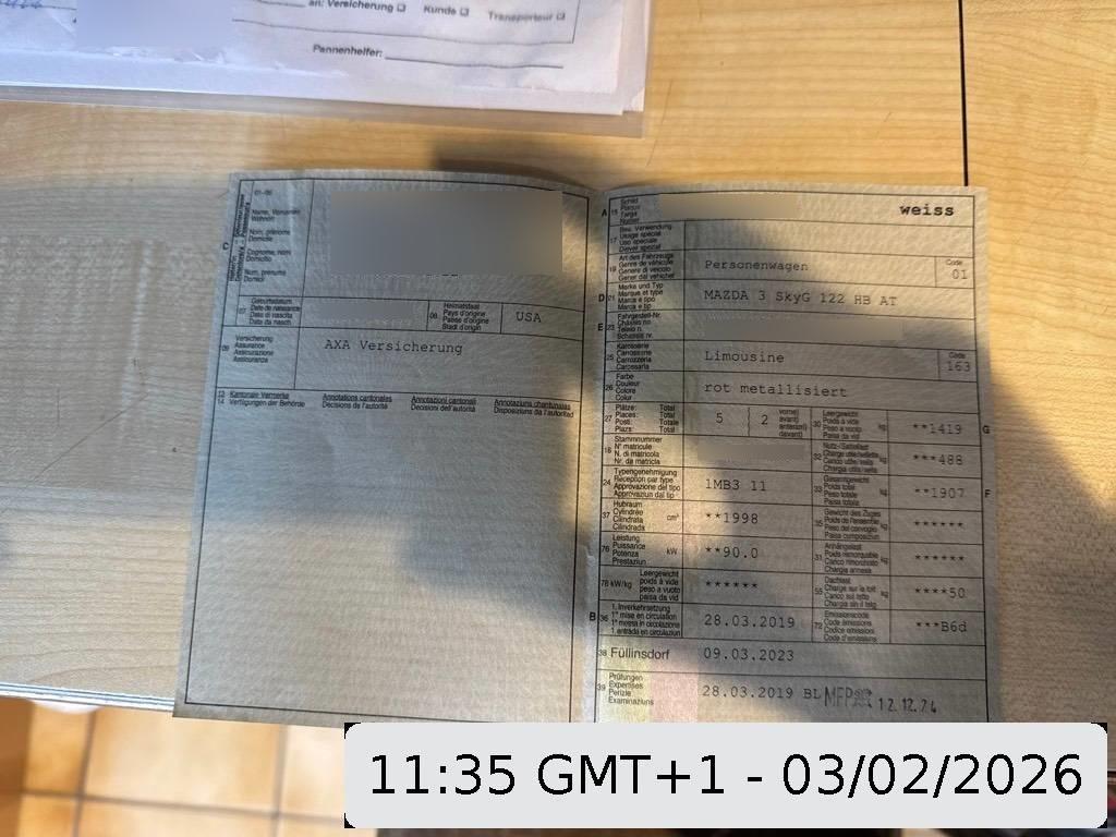 | Fahrzeugausweis | Vorhanden |