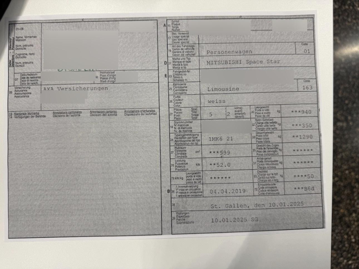 | Fahrzeugausweis | Fehlt |