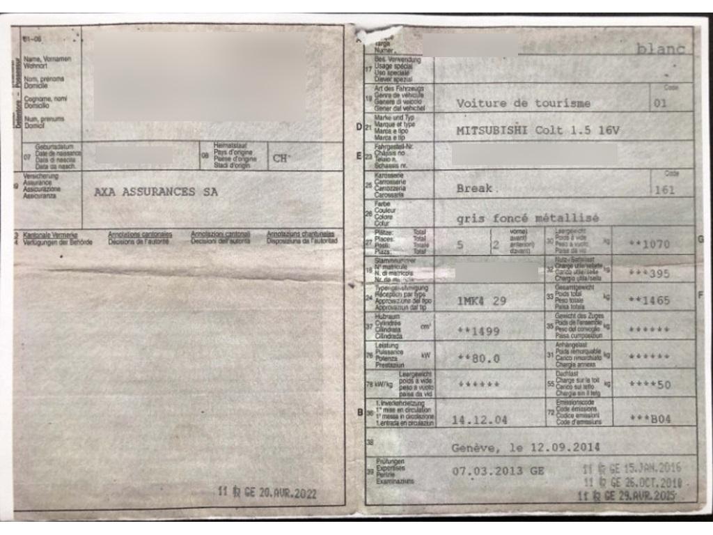| Fahrzeugausweis | Fehlt |