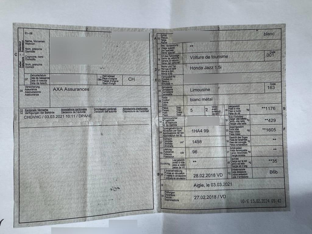| Fahrzeugausweis | Vorhanden |