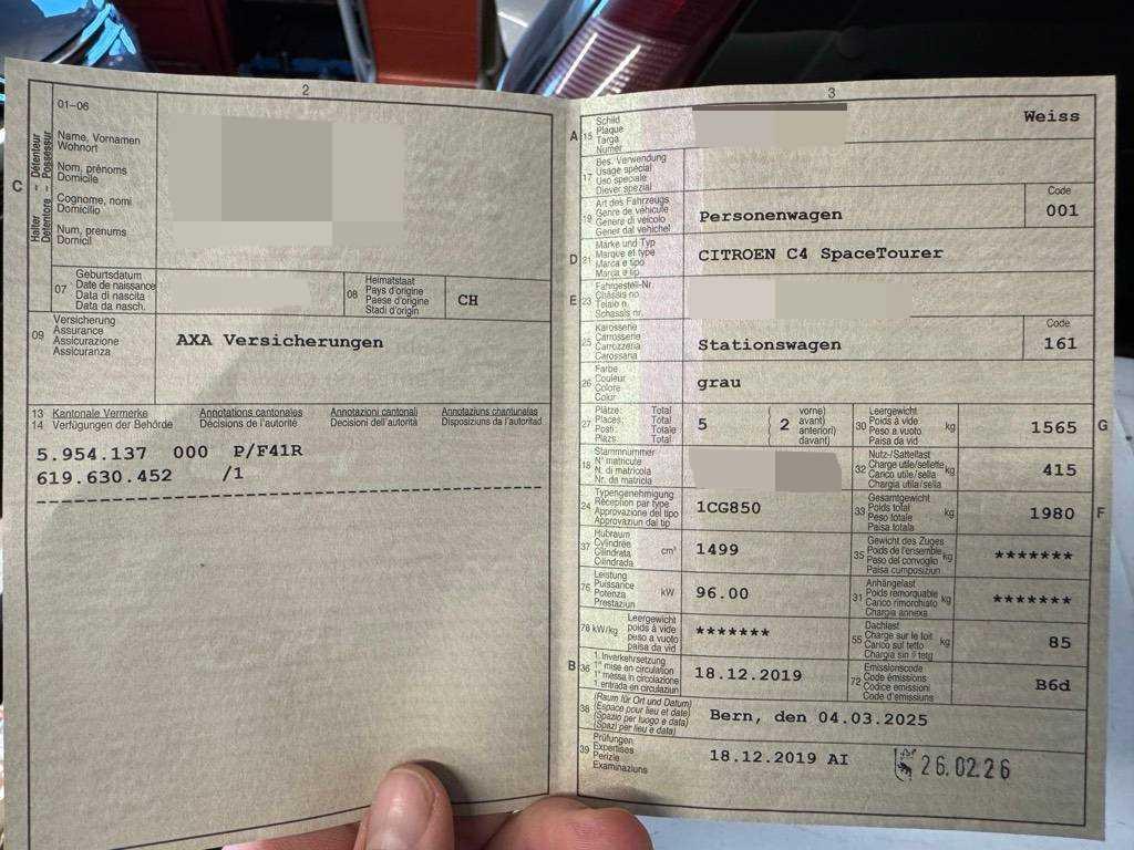 | Fahrzeugausweis | Vorhanden |