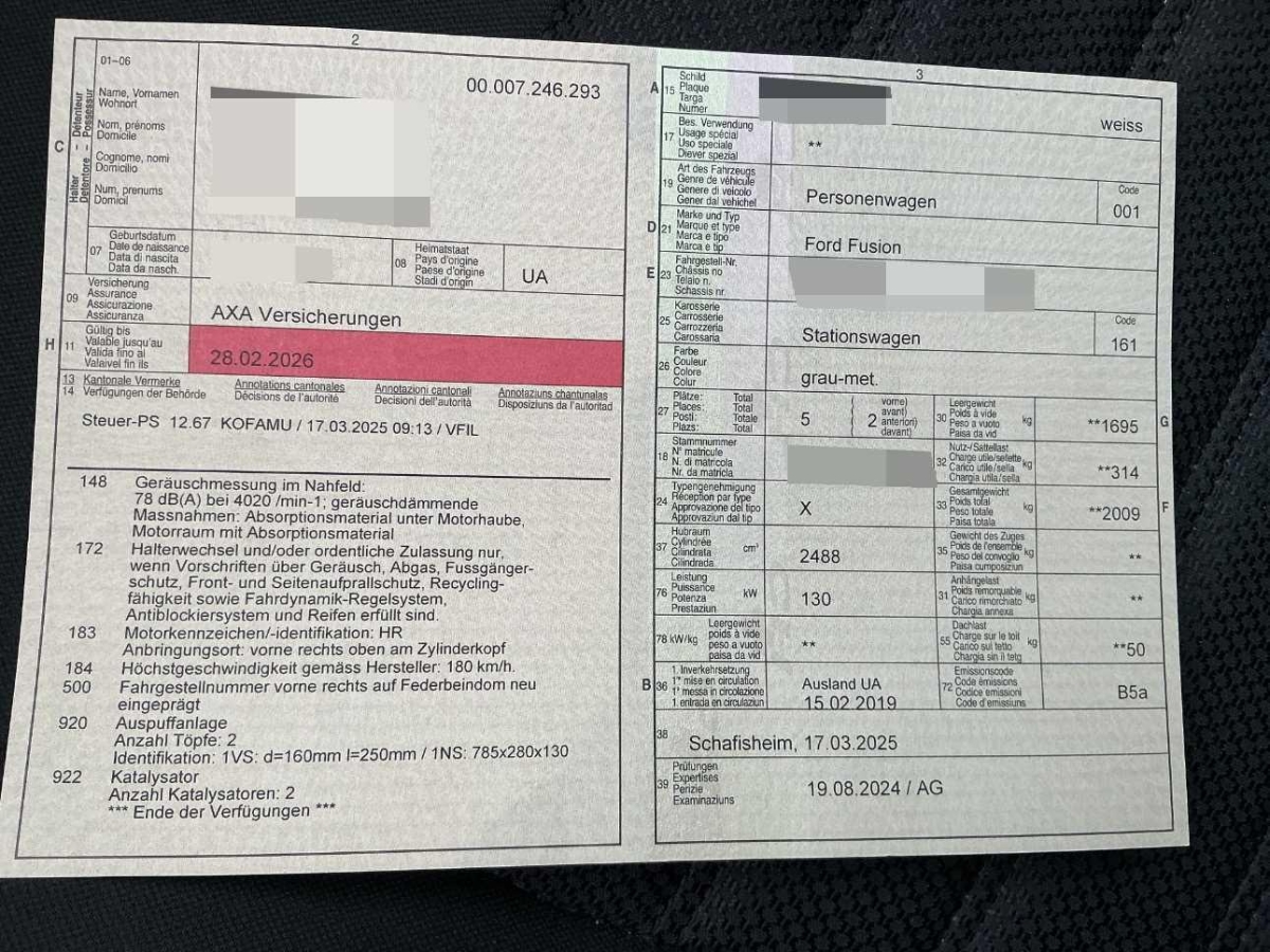 | Fahrzeugausweis | Fehlt |