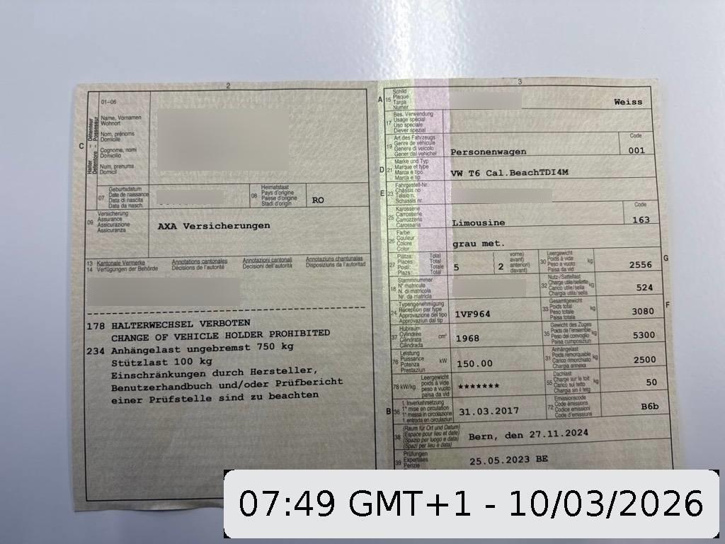 | Fahrzeugausweis | Vorhanden |