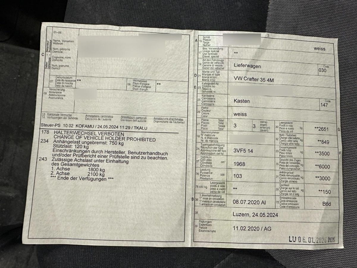 | Fahrzeugausweis | Vorhanden |
